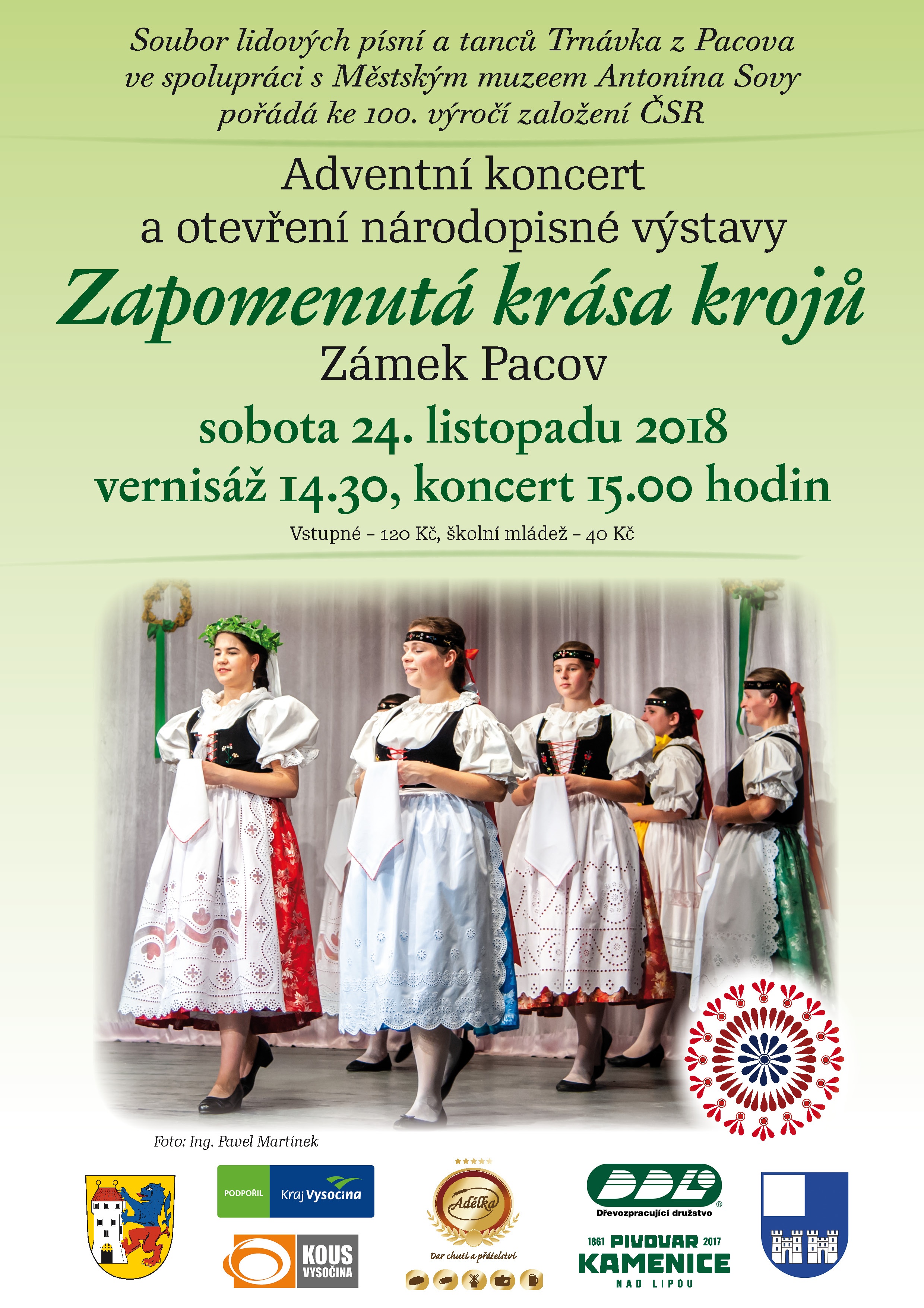 Soubor lidových písní a tanců Trnávka z Pacova pořádá adventní koncert ke 100. výročí založení České republiky.